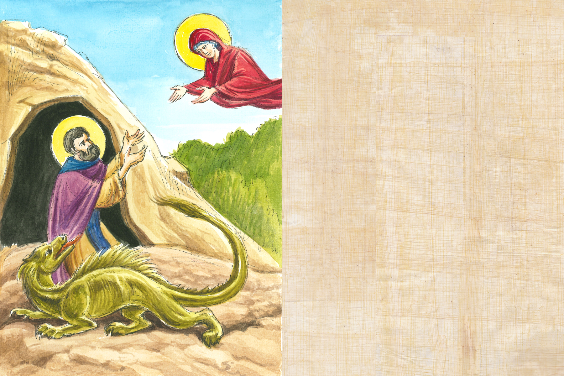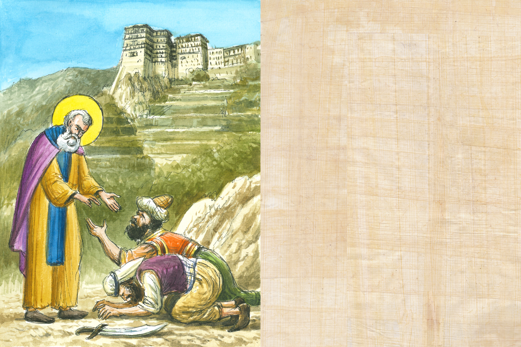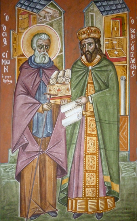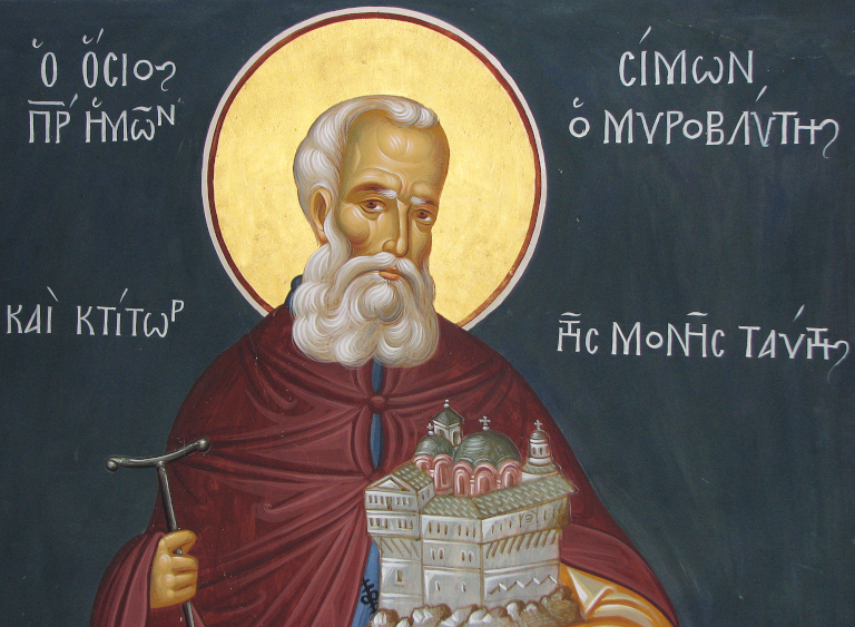 Ο άγιος Σίμων αγάπησε από μικρός τον Θεό και αποφάσισε να γίνει μοναχός για να αφοσιωθεί στην υπακοή, την προσευχή και τη λατρεία του Θεού. Κατάλαβε ότι η μοναχική ζωή είναι σα μια μεγάλη λεωφόρος που οδηγεί με ασφάλεια στη Βασιλεία των ουρανών. Έτσι, ξεκίνησε και πήγε στο Άγιον Όρος, που τότε ήταν φημισμένο για τους μεγάλους ασκητάδες και αγίους που ζούσαν εκεί. Έφτασε σαν το διψασμένο ελάφι και έψαξε να βρει τον πιο ενάρετο αλλά και τον πιο αυστηρό γέροντα. Ποθούσε να του διδάξει τα μυστικά της πνευματικής ζωής και να τον γυμνάζει όλο και περισσότερο στην υπακοή και την αυταπάρνηση. Τον αγάπησε δε τόσο πολύ, που του αφοσιώθηκε με όλη του την ψυχή. Σύντομα πλούτισε με πολλές αρετές, ώστε έγινε περιβόητος σε όλο το Άγιον Όρος. Βλέποντας ο γέροντας την προκοπή του υποτακτικού του, άρχισε να του συμπεριφέρεται σαν αδελφό του, αλλά και να τον συμβουλεύεται σαν δάσκαλό του. Μόλις είδε ο ταπεινός Σίμων να τον τιμά και να τον σέβεται τόσο πολύ, λυπήθηκε. Το σκέφτηκε καλά και αποφάσισε να τον παρακαλέσει να του δώσει ευλογία να πάει να ησυχάσει κάπου μόνος του, μακριά από τη δόξα των ανθρώπων.